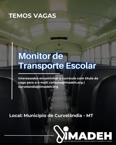 O Instituto Imadeh, abre vaga para trabalhar no Município de Curvelândia/MT.