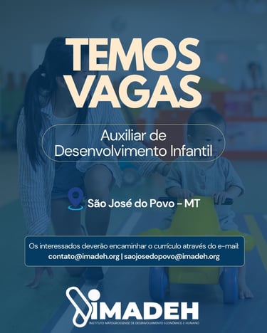 Interessados encaminhar o currículo com título da vaga para o e-mail: contato@imadeh.org | saojosedopovo@imadeh.org