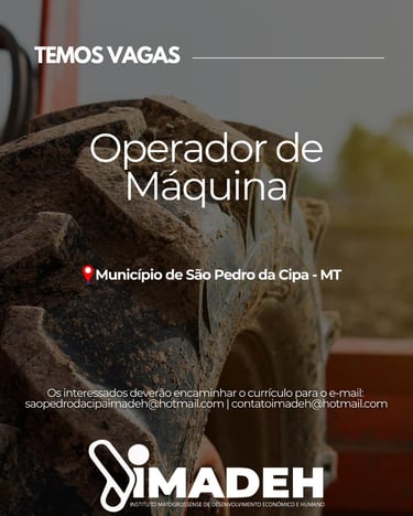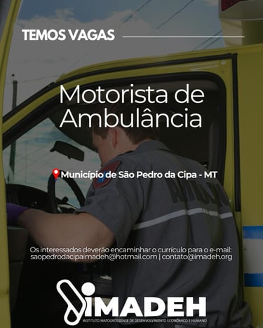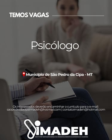 O Instituto Imadeh, abre vaga para trabalhar no Município de São Pedro da Cipa - MT.