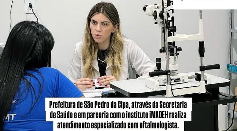 O Instituto Mato-grossense de Desenvolvimento Econômico e Humano (IMADEH), em parceria com a Prefeitura Municipal de São Pedro da Cipa, por meio da Secretaria Municipal de Saúde, iniciou no dia 27 de agosto de 2025 o Mutirão de Atendimento Especializado em Oftalmologia, direcionado aos munícipes atendidos pelo Sistema Único de Saúde (SUS).