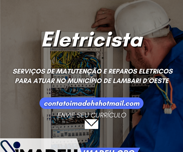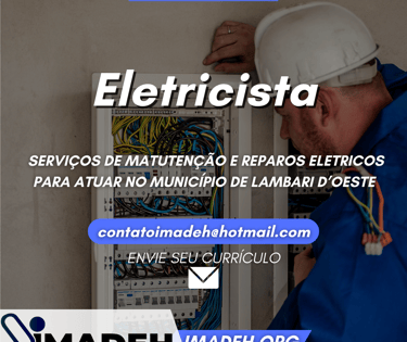O INSTITUTO MATOGROSSENSE DE DESENVOLVIMENTO ECONÔMICO E HUMANO abre credenciamento para Prestação de serviços de Eletricista no município de Lambari D'Oeste/MT.
