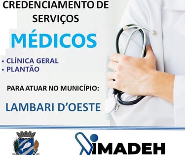 O INSTITUTO MATOGROSSENSE DE DESENVOLVIMENTO ECONÔMICO E HUMANO abre credenciamento para Prestação de serviços Médicos no município de Lambari D'Oeste/MT.
