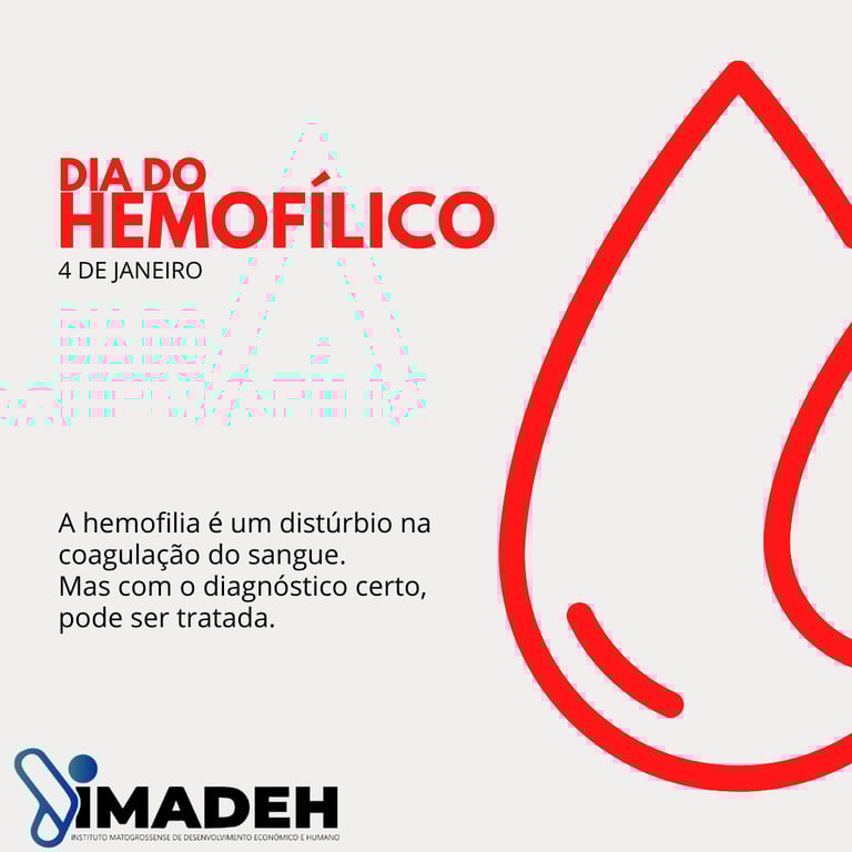O dia do Hemofílico, comemorado na data de 4 de janeiro, tem como objetivo chamar atenção à Hemofilia, um grupo de doenças genéticas hereditárias que prejudicam a capacidade do corpo humano em controlar a circulação do sangue, além de dificultar o processo da coagulação, que é usado para parar hemorragias.
